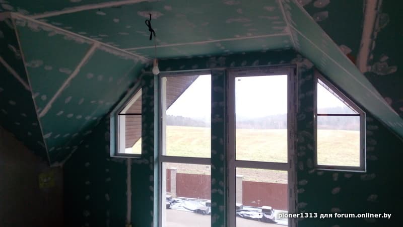 На противоложной от окон стене будет экран проектора (под сам проектор на потолке вывели провода и площадку).