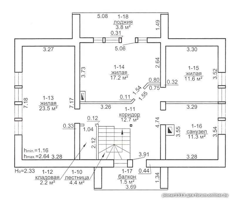 1. Мансарда и по краям низкии потолок, так что помещения только для отдыха - сна