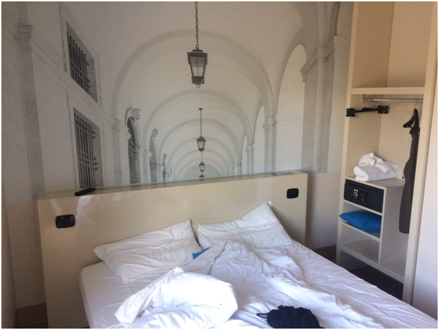 Номера невероятно стильны, а сам отель овеян духом Да Винчи, тем более после посещения музея Да Винчи. Номера по 30 кв.метров незабываемы, кровать огромна, зеркала создают потрясающий антураж. Менее ста метров до остановки поезда s2, который входит в городской билет за 4,5 евро. А если едете до Милано Централе, то можно и пройтись 550 метров до конечной станции желтой линии, кстати возле нее есть Макдональдс (цены примерно как в Минске), а также до нее можно доехать прямо отеля на 41 автобусе, несколько остановок (все тот же суточный билетик принимается). Рядом находится парк 8 гектаров, очень прикольно по нему погулять.