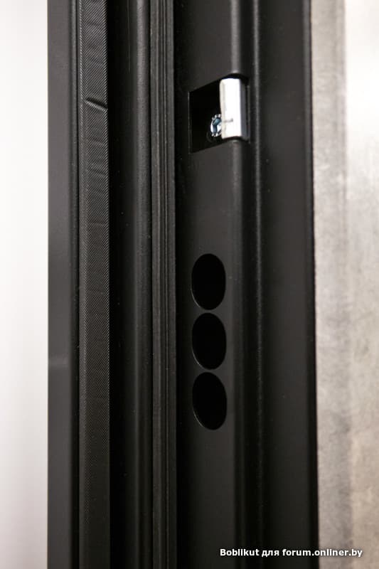 3.5. Конструкция дверного блока иногда имеет комплекс мер по защите засовов от воздействия снаружи. В них входят стальные наружные наличники, стальные притворы дверной створки, торцевая защита засовов от доступа с торца дверной рамы (защита от забивания ригелей). Наиболее предпочтителен вариант монтажа, при котором все перечисленные элементы имеют максимальную мощность и являются полнотелыми стальными. При этом предпочтительнее являются варианты конструкций, когда стальные наличники утоплены в стену при монтаже (выпилка четверти в стене не входит в стоимость данной разработки), стальные притворы утоплены технологически в раму, торцевая часть рамы напротив засовов является труднодоступной снаружи и имеет стальные защитные элементы, препятствующие доступу снаружи.