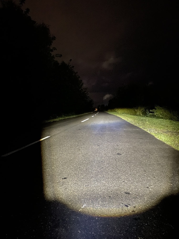 Тут просто нужен баланс, меньше света под колеса, а дальше яркость должна нарастать, тогда картинка выравнивается и все видно. Если направишь хотспот под колесо, глаз настроится на него, и в 5 метрах вообще ничего не увидишь.