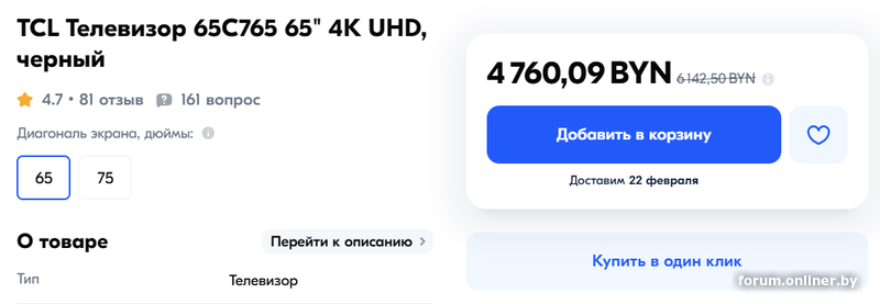 Появился на озоне TCL Телевизор 65C765 65" . Но что-то не то с ценой. Вроде курс рубля вырос, не понимаю я их ценообразования, должен же был подешеветь.