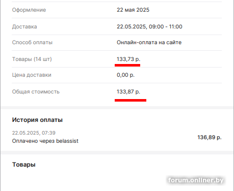 Что-то сдача (за весовой товар) после оплаты онлайн не пришла...