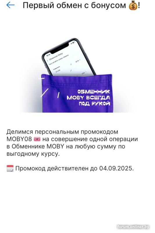 Закинул пару баксов на валютную карту для оплат на алике, через день прислали "персональный" промокод для обменника Moby на 0.009 к курсу