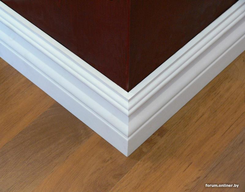 Можно ещё заказать плинтуса из массива ольхи, сравнительно недорого, 30руб за 2 метра, в цвет межкомнатных дверей. Но опять же, сложный монтаж(или нужно платить), но самое главное - щели.