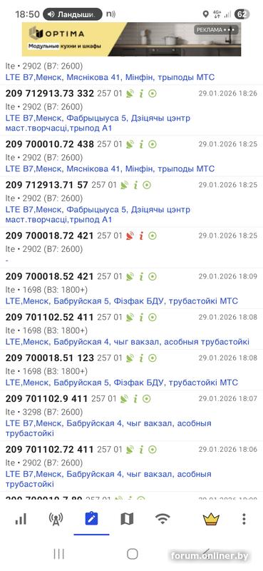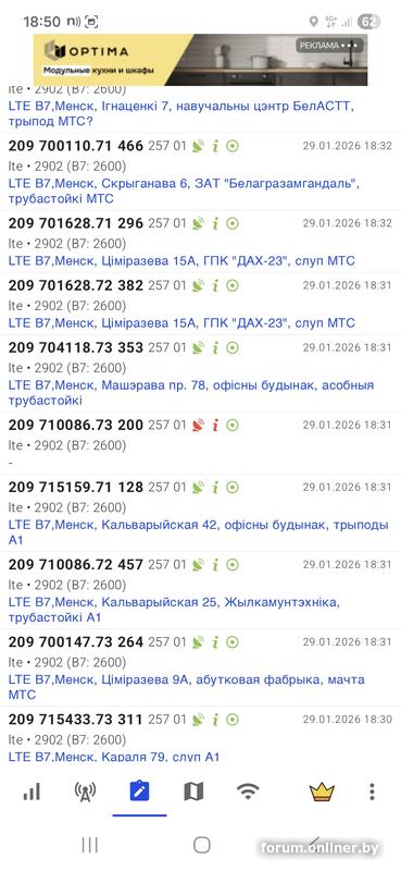 Первая строка - это LTE от beCloud'a (Band 20, 800МГц, EARFCN 6350), по первым двум цифрам eNodeB ID 602449 можно понять, что это Могилевская область, БС МТС, в случае МТСа (и life) номер БС совпадает с последующими четырьмя цифрами eNodeB ID, то есть LTE находится на БС МТС 2449, TAC 165, Sector ID 23, PCI 447.
