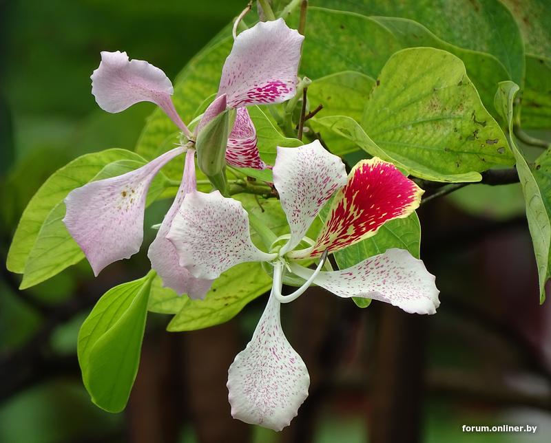Быстрорастущее вечнозеленое тропическое дерево из семейства Бобовые родом с Мадагаскара, известное своими эффектными, похожими на орхидеи розовыми цветами с красными крапинками и листьями в форме крыльев бабочки. Натурализовалось в Мьянме, Австралии, в Карибском бассейне, на юге США, в Колумбии, Бразилии и на островах Тихого океана.