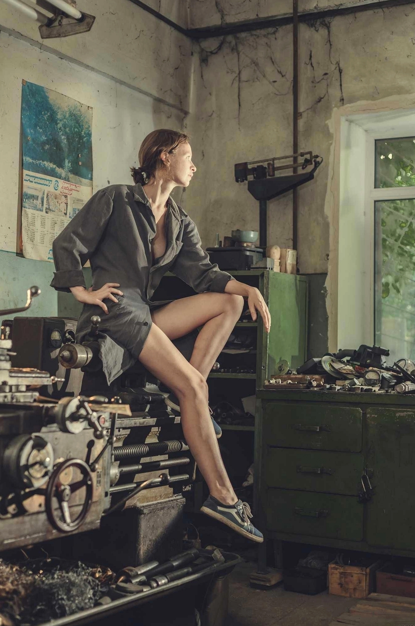 школьником устроился летом на часовой завод учеником токаря, да женщин было в цеху 90 %, в нестандартных халатах, также помню жара , ласковый май в динамиках в цеху, и
