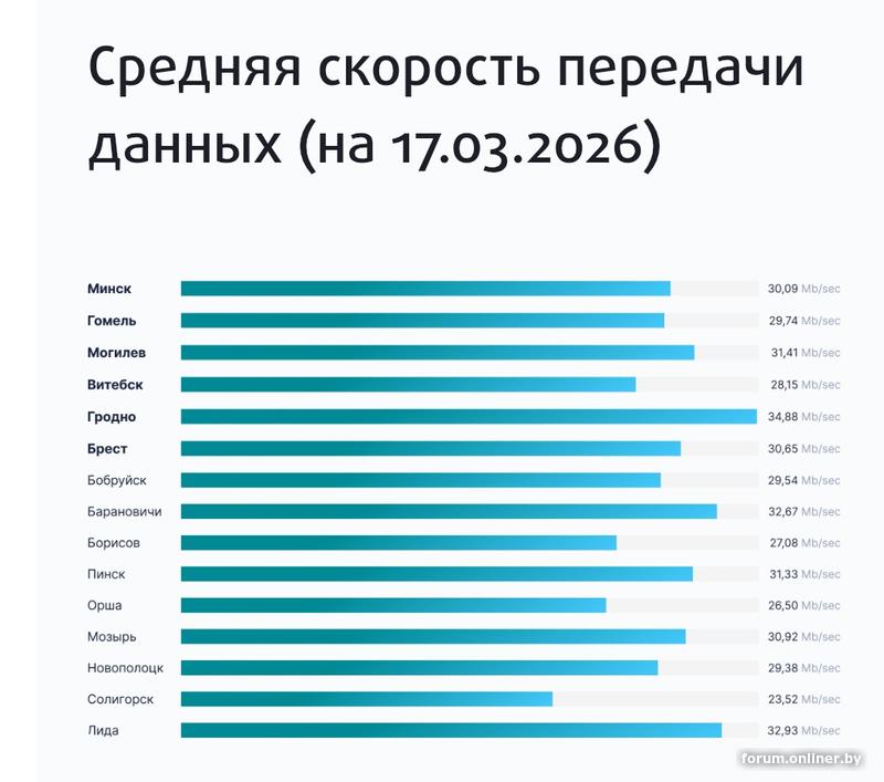 Сярэдняя хуткасць перадачы дадзеных (на 24.03.2026)
