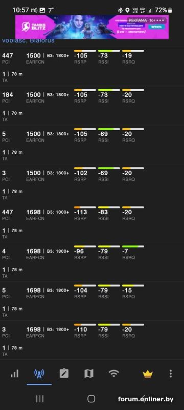 Первая строка - это LTE от beCloud'a (Band 20, 800МГц, EARFCN 6350), по первым двум цифрам eNodeB ID 602449 можно понять, что это Могилевская область, БС МТС, в случае МТСа (и life) номер БС совпадает с последующими четырьмя цифрами eNodeB ID, то есть LTE находится на БС МТС 2449, TAC 165, Sector ID 23, PCI 447.
