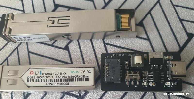 В идеале, сразу воткнуть этот модуль в просто оптический преобразователь, и не вставлять оптику. Далее, нужно прописать идентификатора производителя оптической коробки, что дал вам провайдер (ZTE или Huawei), что именно прописывать в вашем случае, загуглите, я делал это давно и на других стиках.
