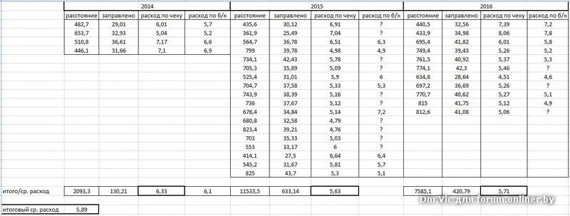 езжу с апреля 2014 года, чеки начал собирать с ноября. на достоверность не претендую, т. к. по датам некоторых чеков не хватает, 4 чека из сохранившихся нашел без своих пометок. получившийся расход немного великоват, т.к. не учтен летний расход за 2014 год и мой повседневный маршрут для приуса коротковат (для зимней эксплуатации): чуть больше 7 км до работы, чуть больше 3 км от работы до спортзала, около 10 км от спортзала домой. итого минимум 20 км в будни. без спортзала маршрут дом-работа + работа-дом чуть больше 13 км. если бы повседневный зимний маршрут был длиннее, то спокойно уложился в интервал 5-5,5
