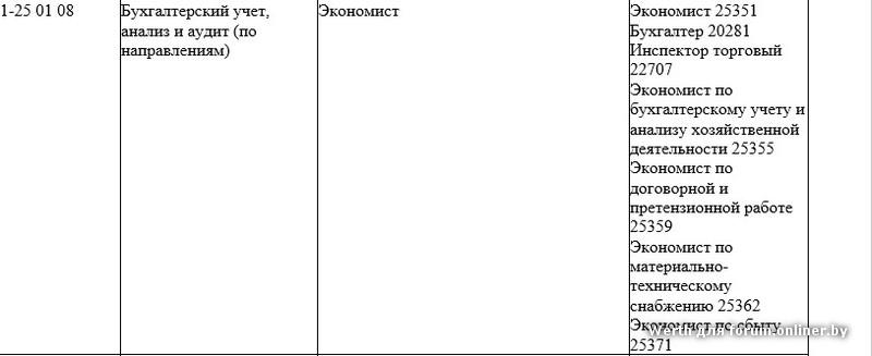 Общегосударственный классификатор Республики Беларусь ОКРБ 011-2009 «Специальности и квалификации»