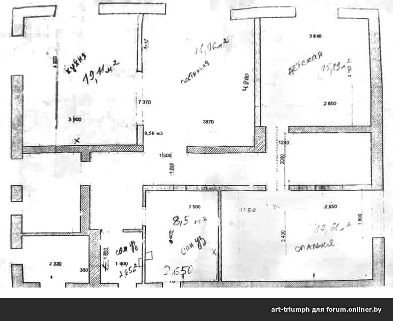 Еще как вариант кухню перенести в комнату 20 м, тогда у каждого ребенка своя комната. Но есть одно "но" это горизонтальная разводка системы отопления , оно проходит вдоль стены которая граничит с кухней