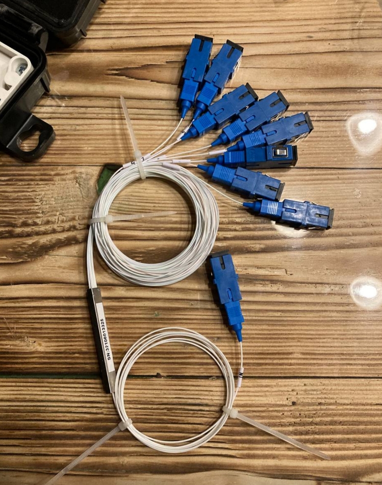 1й каскад - сплиттеры 1х8 (он у меня в здании правительства рядом с вышкой, на которой смонтирована OLT (головная станция). Второй каскад (те же сплиттеры 1х8 ) - уже на опорах в муфтах.