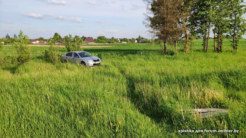 Пострадавшую Шкоду вынесло через мелиоративный канал на обочину. Удивительно, что не перевернулась, наверное, сыграло то, что через канаву был перекинуть импровизированный мост из деревянного поддона. Девушка-водитель была в шоковом состоянии. У Шкоды было что-то срезано металлическое снизу бордюром - может защита, может часть днища.