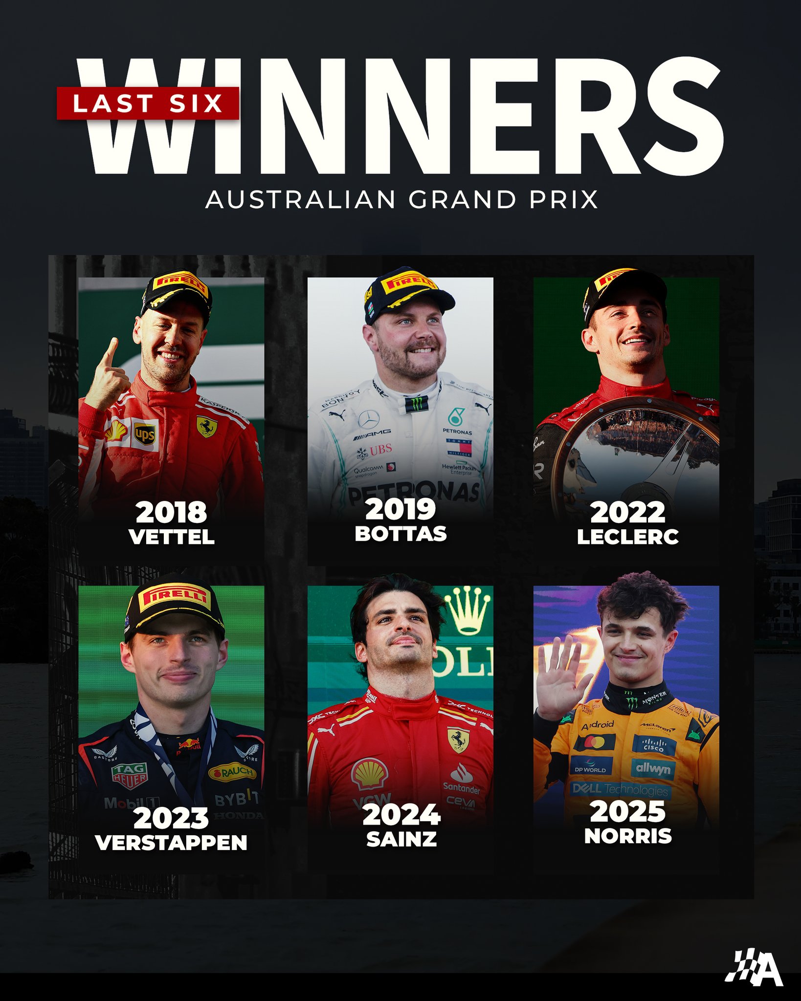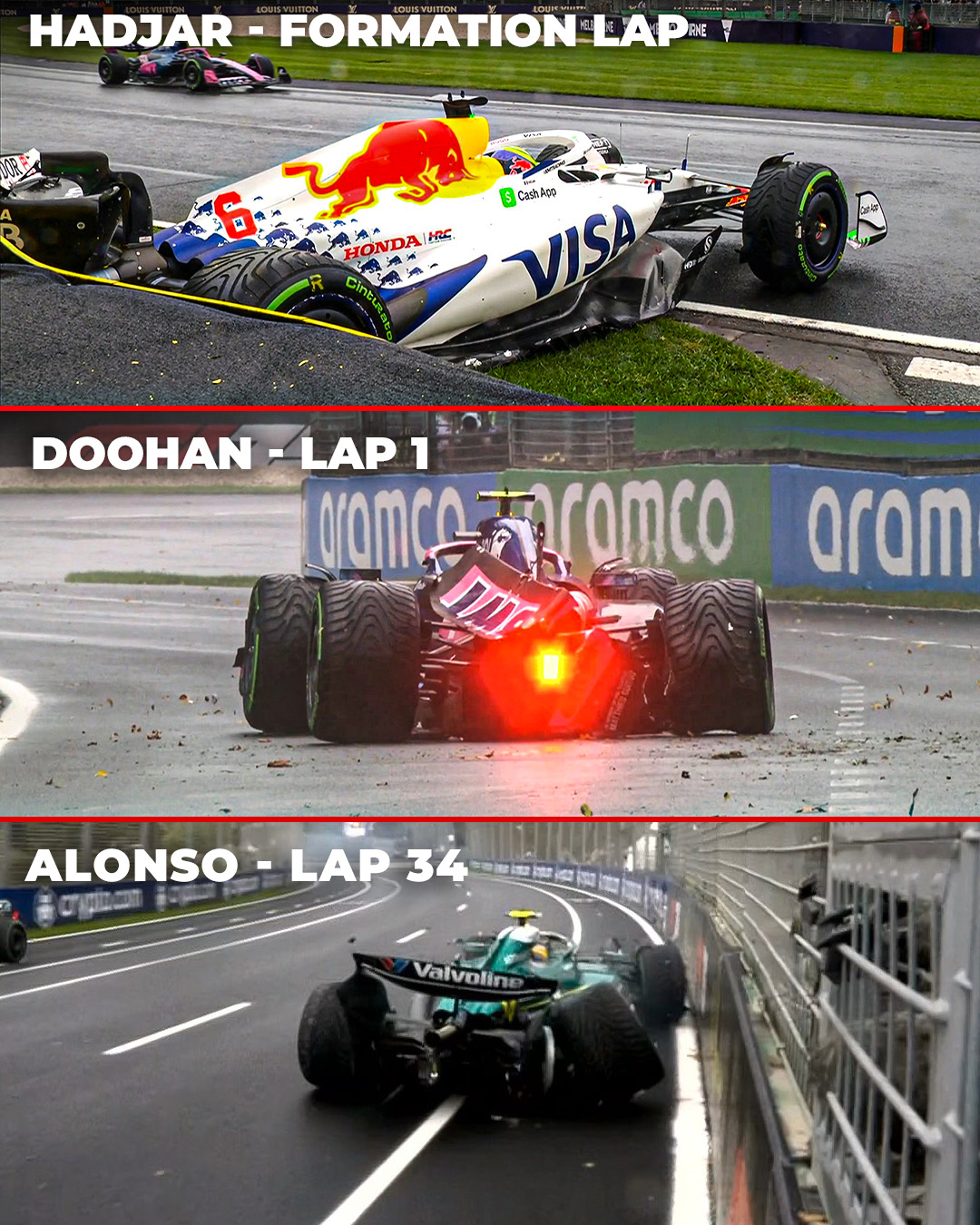 * Третий год подряд действующий победитель Гран При Австралии сошёл с дистанции. В 2023-м выбыл Шарль Леклер, в 2024-м – Макс