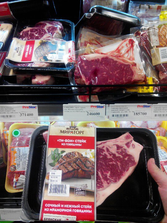 Маленькая отчетка. Вчера обнаружена говядина Мираторг зернового откорма в Просторе на Притыцкого. Ценник безбожно кусается