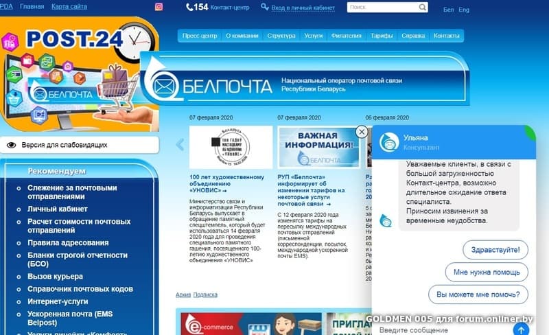 БелПочта http://vopr.belpost.by/index1.php