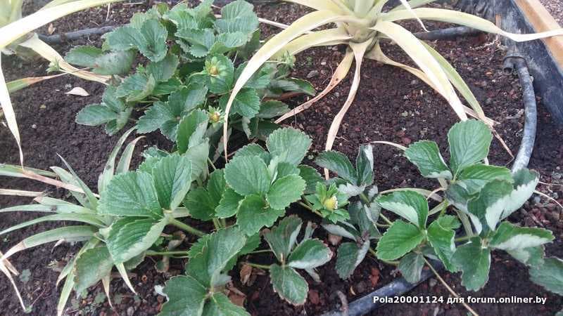 Клубника с ананасами растёт на одной грядке.
