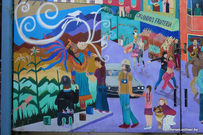 В общем, такого количества граффити, думаю, за всю свою жизнь не видел. Там их реально конца и края нет. Шел, собственно, на ежегодный мексиканский праздник "День Сесара Чавеса" (официальный праздник штата, посвященный памяти и наследию Сесара Чавеса, выдающегося американского активиста, боровшегося за гражданские права и улучшение условий труда для сельскохозяйственных рабочих, кстати, в Калифорнии это официальный выходной для государственных служащих), чтобы посмотреть традиционный в этот день парад старинных автомобилей-лоурайдереов, которых обычно на таких мероприятиях собирается более 500 штук... но, как оказалось, сам праздник с этого года переименовали просто в День сельскохозяйственных рабочих, в связи с какими-то претензиями к Чавесу... ну и парад лоурайдеров (чисто мексиканская фишка) решили вообще на этом празднике не проводить. Типа: а какое отношение эти лоурайдеры вообще к сельскому хозяйству имеют? В итоге пришлось ознакомиться с великим мексикано-американским наследием на примере граффити. Оказалось, тоже не менее интересно, чем парад лоурайдеров.