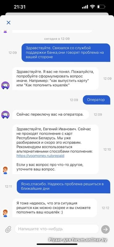 Короче не дождался письменного ответа от бгпб,позвонил им. Говорят Юмани голову дурят. Пишу опять в Юмани,сегодня они уже пролому признают. Сказали что на данный момент проблема с пополнением с беларуских карт.