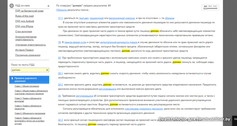 В ПДД (при простом поиске) есть 61 вхождение слова "должен".