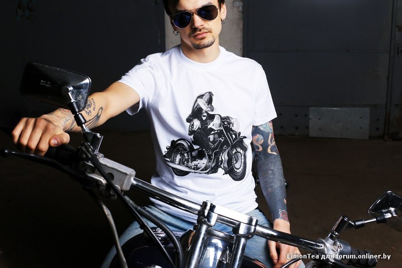 Более крупные фотографии футболок есть, но сюда не выкидывал, тут аудитория не за этим просила. Свет был большой и один, низкий потолок не позволил его разместить над мотоциклом (я не разбираюсь в том, чтобы от этого изменилось в деталях).