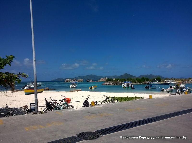На Праслине снимали аппартаменты среднего уровня со всем необходимым. Питаться можно как самим, так и в местных кафешках, в ресторанах. Мы договорились и нам каждый вечер приносили в номер ужин такого объема, что его хватало ещё и на завтрак, а на обед покупали на рынке бананы/ананасы/манго/авокадо, в жару есть не хочется… Цены везде приблизительно одинаковы. Ездили паромом на 1 день на Ла Диг (по 30$). Мы даже великов не брали, можно всё успеть и так обойти (первый паром в 7:00, последний около 18 ). Ещё брали экску по островам Курьёз (черепахи) и Сен Пьер (снорклинг) с барбекю на день – по 80е.
