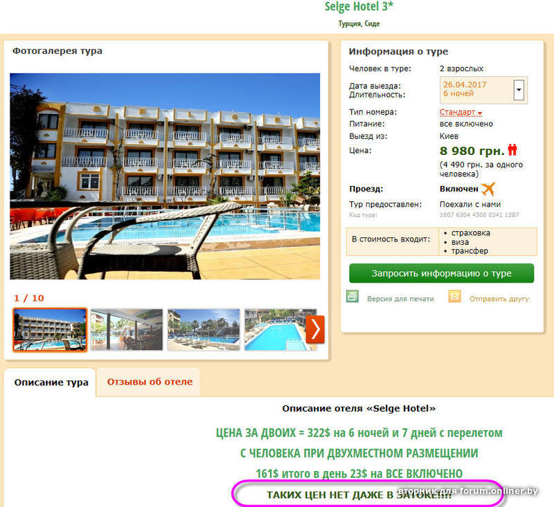 Я не могу понять, что Вы пытаетесь доказать? Данная поездка в Турция как основная (и для большинства я думаю единственная в году) "на море" мягко говоря не очень. Дневная температура воздуха 23 при облачности и температура воды 17 думаю не самые приятные для купания. Да и 6 дней из за возможных поздних приездов и ранних выездов могут превратиться только в 4 полноценных. Безусловно, 150$ с лица, цена сладкая. Но считаю, что данную поездку можно только рассматривать как "алкотрешный уик енд" :D