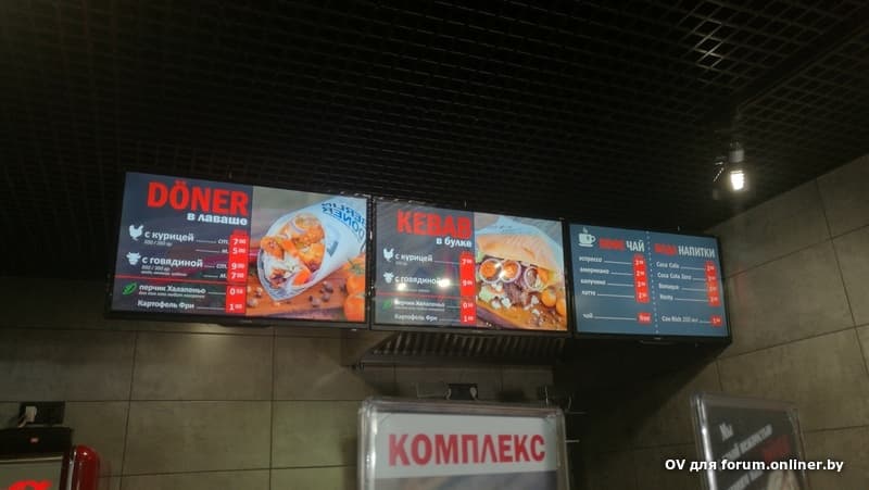 Другие заведения: Невский общепит (сеница), Куркума(КГ), Переход в Столице; ЛавашКебаб(есенина), ЛавашКебаб(Бровки), DonerKebab_лог22, "Завтрак", Шашлычная_экс., Вьетнамская кухня, пловрубай, Belvedere (ТЦ Замок), Завтрак 7/24 (Инст. кул.), Анталия (Атлантик), "Майя" (Экспобел), "Пицца Марио"