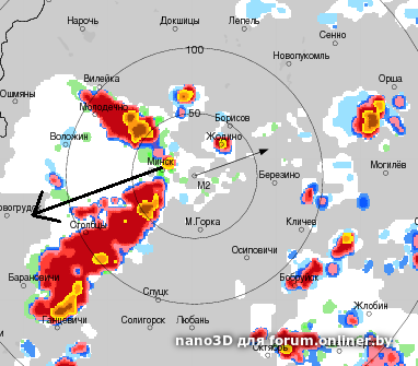 А сейчас грозовые ячейки по всей Беларуси уже разваливаются.