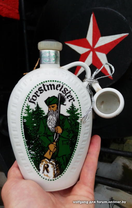 Когда две вместе - вообще другое дело . ну и конечно еще раз обратил внимание на качество .Это же надо было столь добротно делать одноразовую бутылку .Хотя видимо производитель рассчитывал на коллекционеров .Нагуглил еще несколько видов этой бутылки ,в разных даже цветах .Специальный поднос под нее с выемкой даже был некогда ,так же с местами для рюмок керамических похожих на кружку привязанную к одной из моих.В том подносе они как бы фиксировались .эдакая сервировка на подносе от завода изготовителя )))).Вот они две