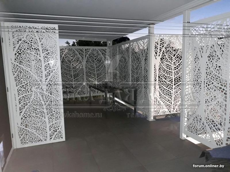 Альтернативное решение: сквозная фрезерная резка МДФ 16мм на деревянном каркасе (брусок 60х60мм). Финишная отделка: окраска по грунту (цвет любой) Крепление на трех точках (аналогично).