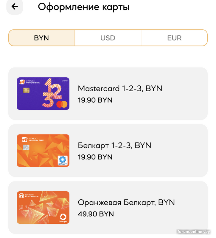 Обслуживание карточек "1-2-3"*: 5 BYN (ежемесячно)