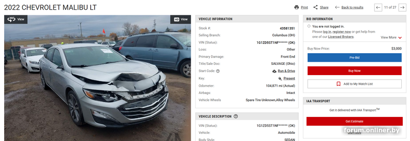 Авто из Америки на Автобарахолке Onliner.by