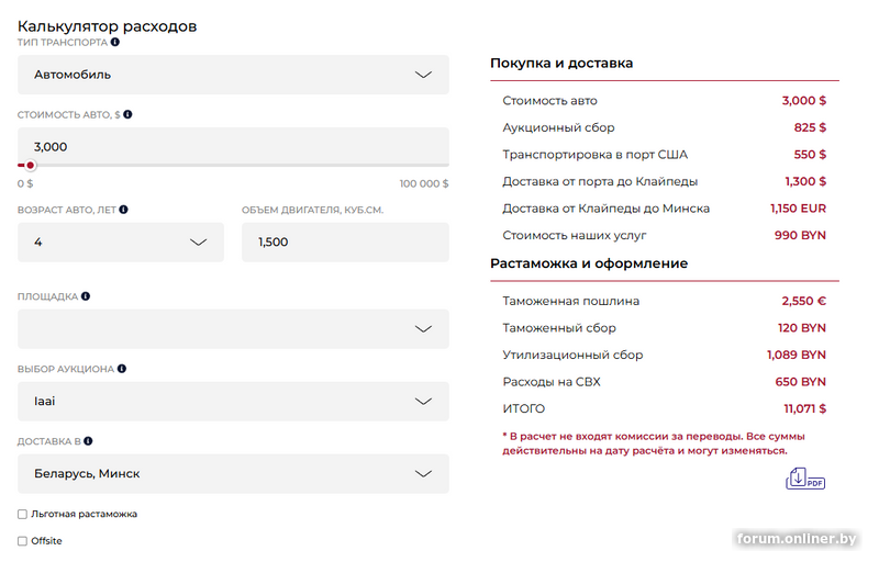 3. Доставка до Минска, в среднем это 1600$