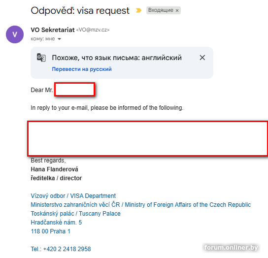 pan-Ziuzia, конечно накропали, мне чехи тож отвечали - толку от их ответа только ноль - "в данный момент визы предоставляются только таким категориям ....."