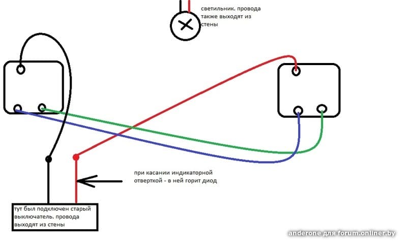 В одном из выкл. перепутано 2 провода