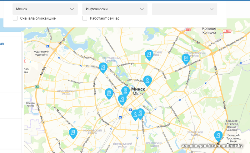 Где можно увидеть актуальную карту с расположением инфокиосков по Минску?