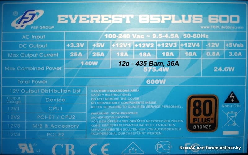 Да по линии 12в мощность 435 ват, что ниже чем у современных бп, но для шдд (10вт), ссд(5вт), 3600 (80вт), 5 кулеров (10вт), 1660ти (135ват), ASUS Prime X470-PRO (хз ват 40макс и то не по линии 12в) мб точно хватает.
