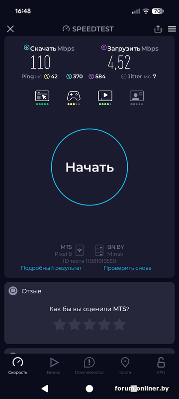 Так, значит с телефона берет вот так, скорости где-то 100-150мб на отдачу 50м