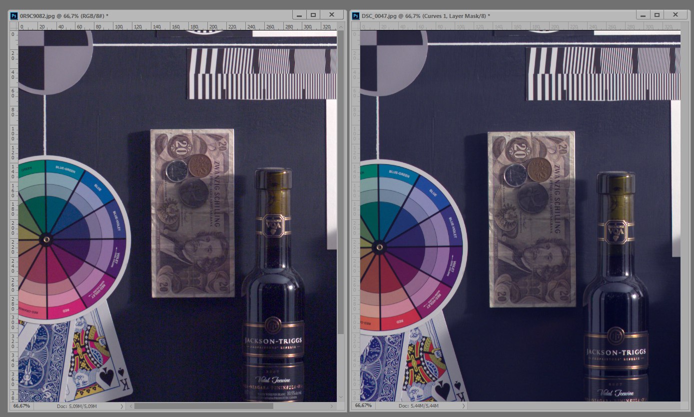 Там на обоих картинках слой с кривыми, дабы проэмулировать тонирование.