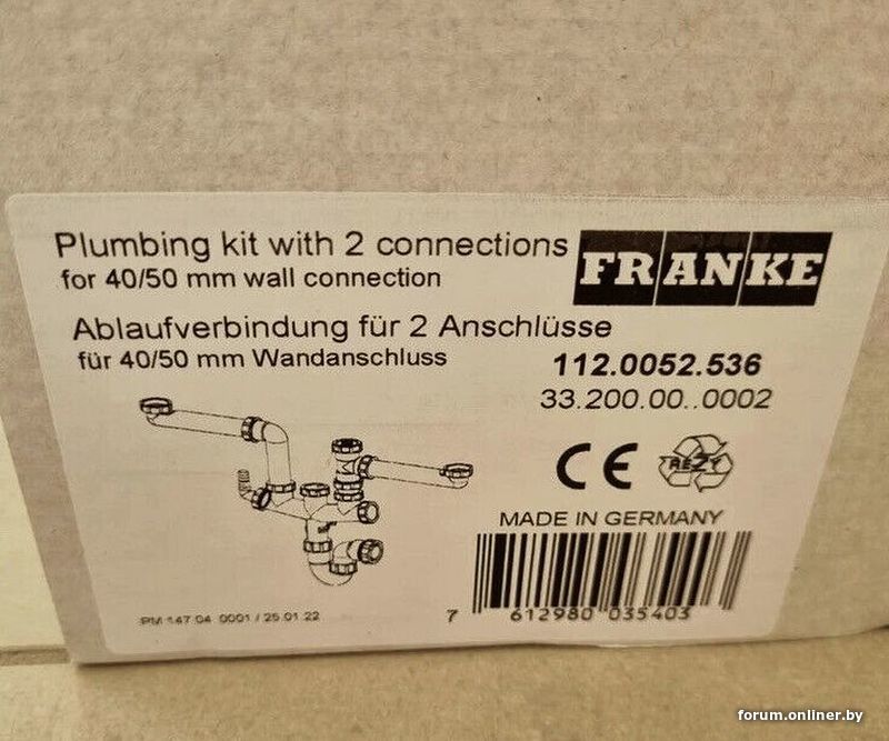 Еще мне очень нравится ТАКОЕ решение... Два отдельных сифона Blanco (не обязательно). Только я мало знаю производителя этого двойного стакана (у стены, на 2х40 мм). Он покупался отдельно, руб. 50-60, случайно (~>20€). Такие стаканы есть у Geberit в Space Saving сифонах, сразу от них вход в стену или в горизонтальную канализационную трубу. Трубки сифонов крутятся, разумеется, как хочешь (со всей верхушкой вместе). Но у него они все одинарные. У этих итальянцев есть всякие и выбор (и полный комплект).