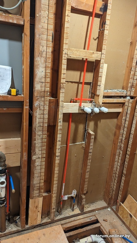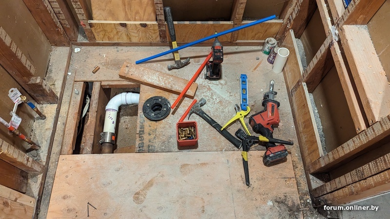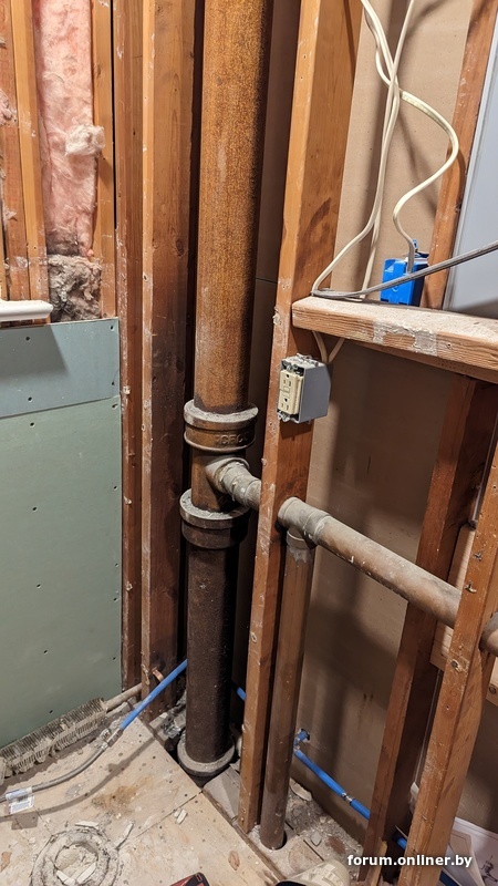по старой памяти чуть омериканской специфики. дом 1960х годов, вся вода и отопление медные, при новой разводке сантехник использует PEX, модный тут нынче. ну и в целом картинки показывают хорошо известную историю про говно и палки в омериканских домах