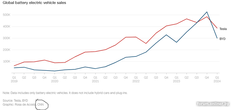 Именно поэтому в Европе и Америке повышают пошлины на них, а BYD стала опережать Tesla по продажам полностью электрических автомобилей в мире.