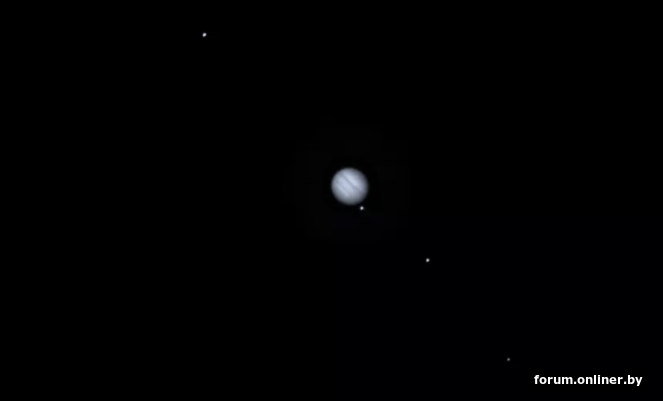 Венера к этому времени была уже за горизонтом. Это Юпитер, как всегда довольно яркий в зимнее время. При приближении оптикой можно даже увидеть его спутники. Я довольно часто наблюдал за ним, в моем недорогом и любительском целестрон 90 EQ за городом это выглядело примерно так (фото из сети):