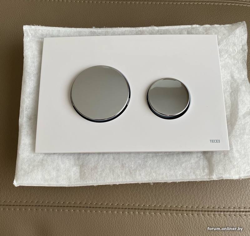 Как первая - 3-я, только вместо стекла или мрамора чисто белый пластик. Или как на 4-ом и 5-ом фото, но кнопки плоские, практически в уровень (не выступают, как на первых). Разумеется, тогда инсталляция только TECE (profil или Base)