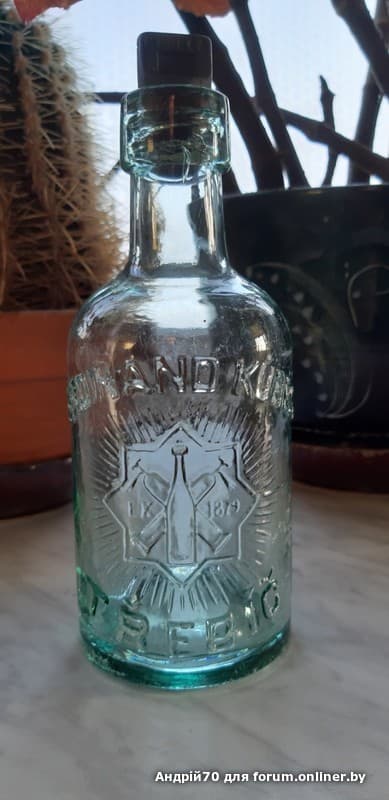 Не старинные, но запечатанные бутылки со своим содержимым. Жаль , этикетка на минералке не сохранилась (