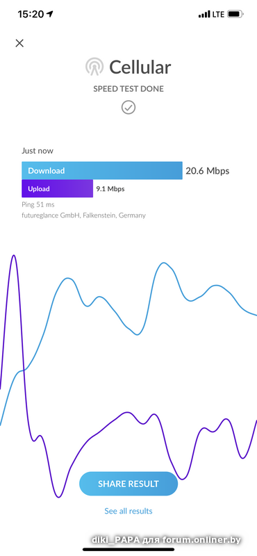 Скорость сразу после переключения на 4г. Телефон позицию не менял.